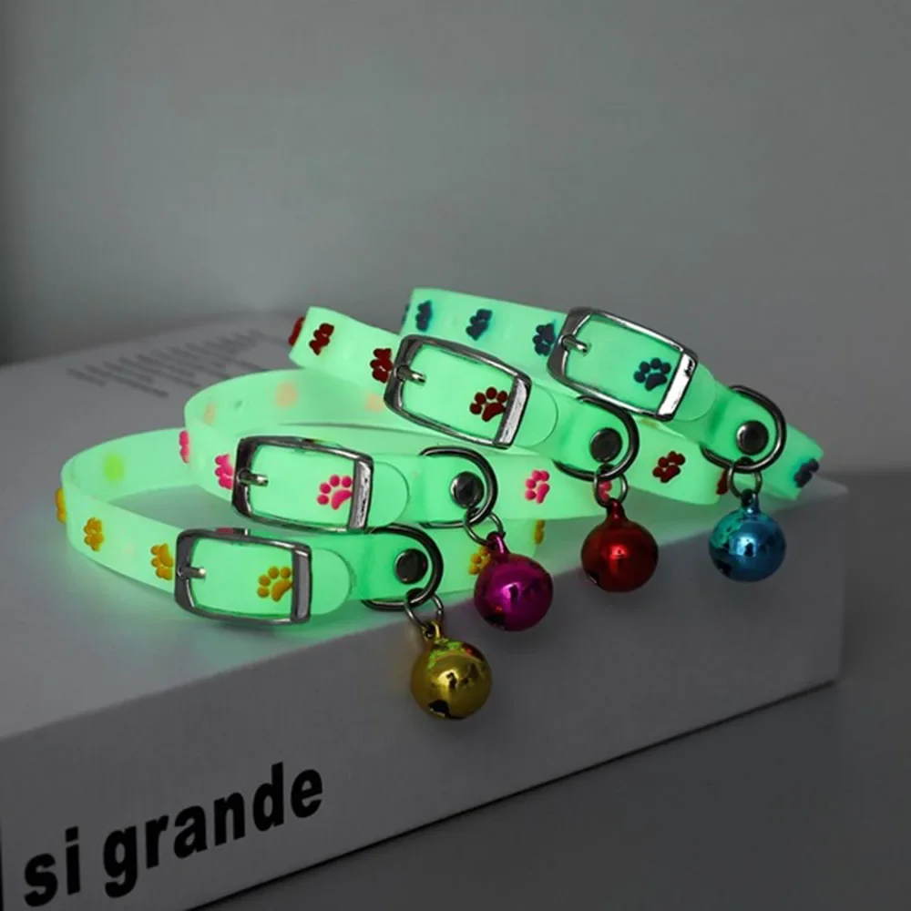 Collar Luminiscente para Gatos. Este Collar de Gato que Brilla en la Oscuridad es la opción perfecta para mantener a tu pequeño amigo visible y seguro, incluso en las horas nocturnas. Con un diseño atractivo y funcional, este collar está hecho de silicona suave, lo que lo hace cómodo para tu mascota, ideal para gatitos y perros pequeños. El patrón lindo le da un toque único y divertido, sin sacrificar la durabilidad o la comodidad.